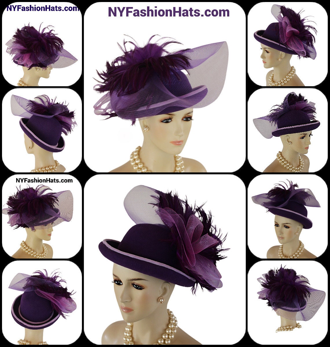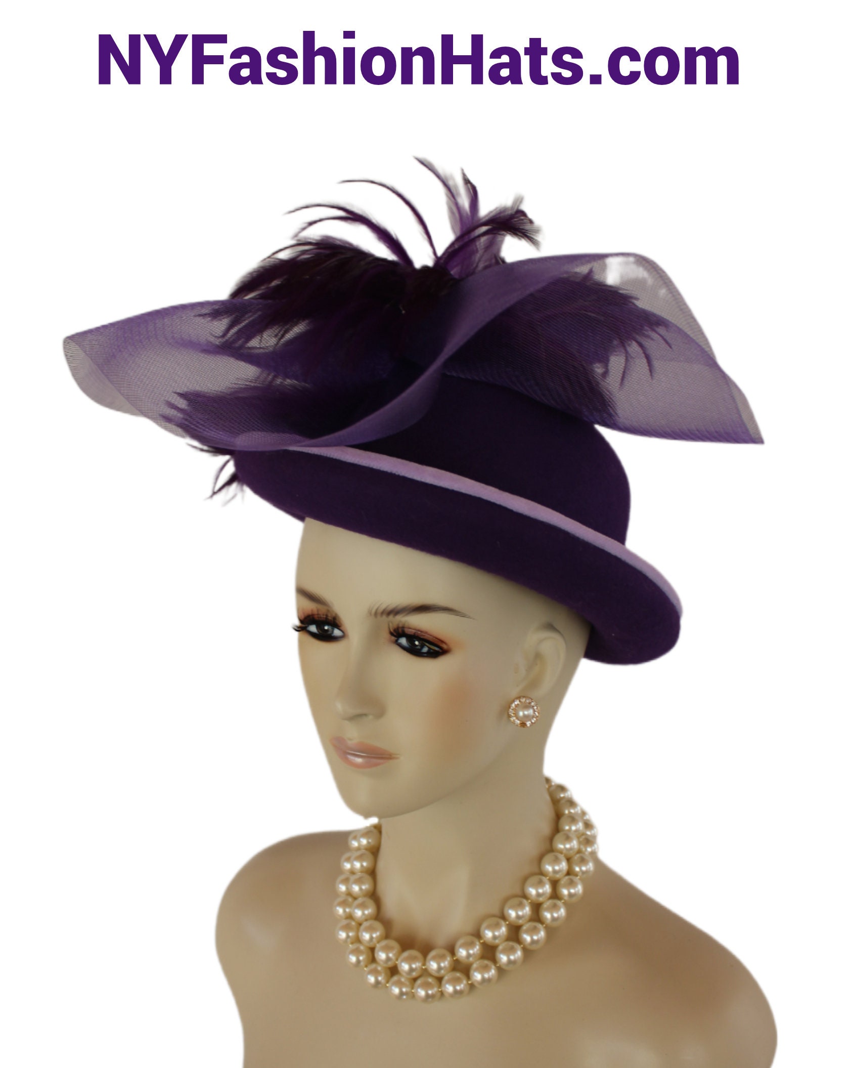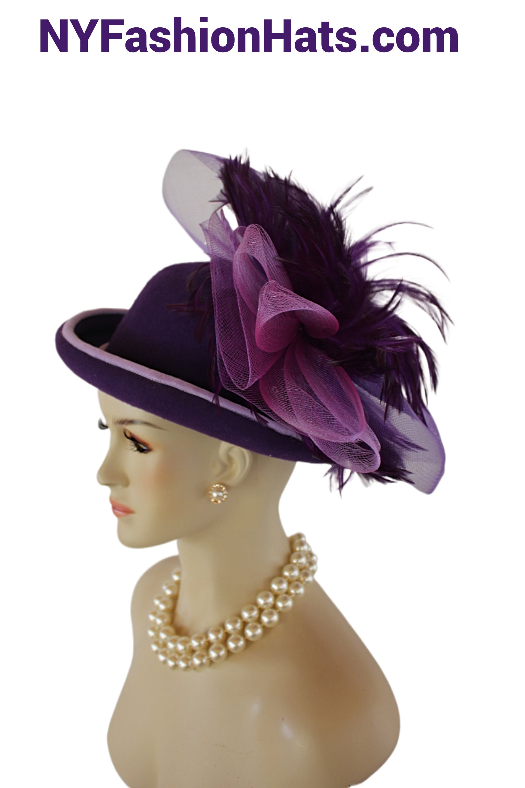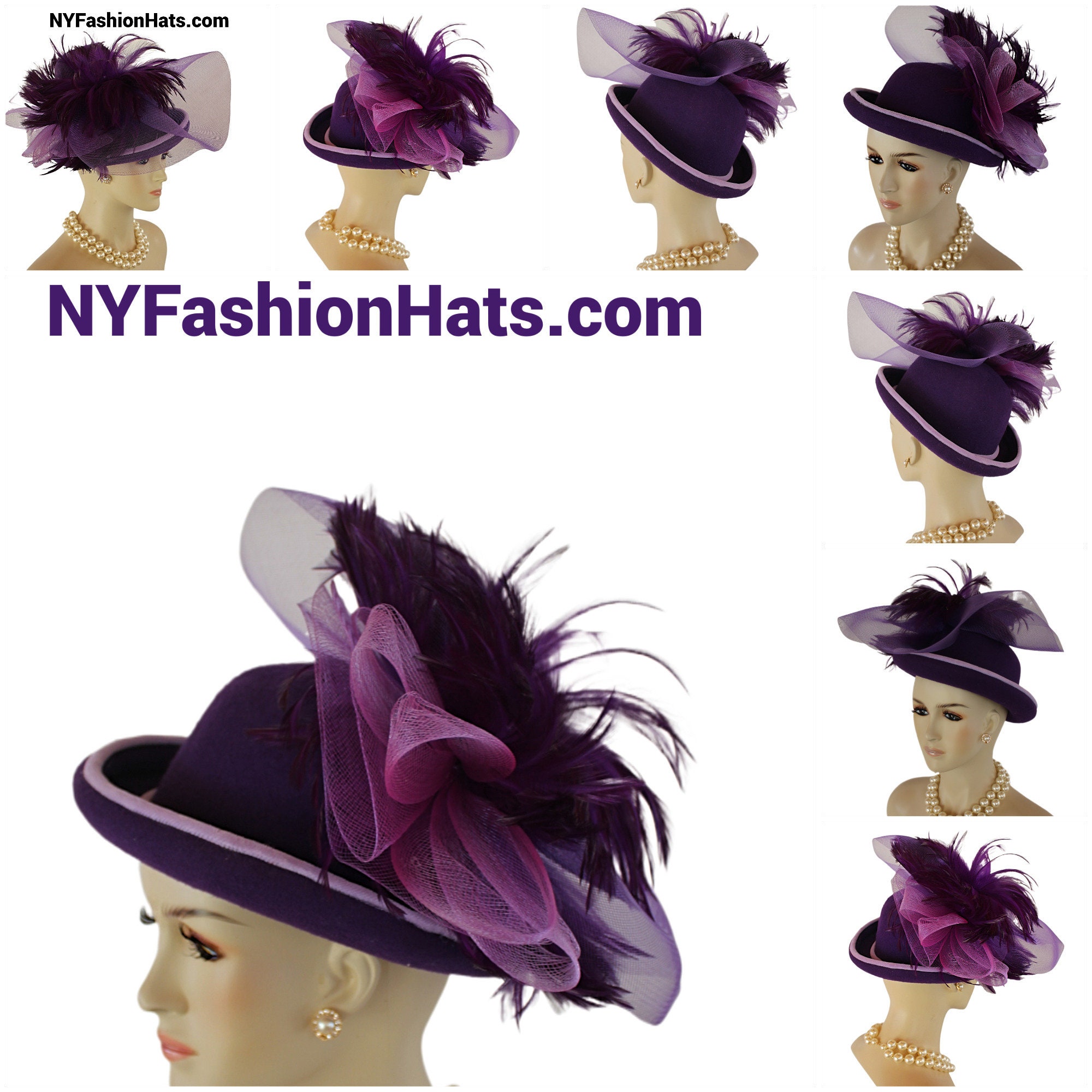 This Motf Premium Purple Fashion Hat Is Hand Made By Couture Designer Hats – A Division Of NY Fashion Hats Fine Millinery.