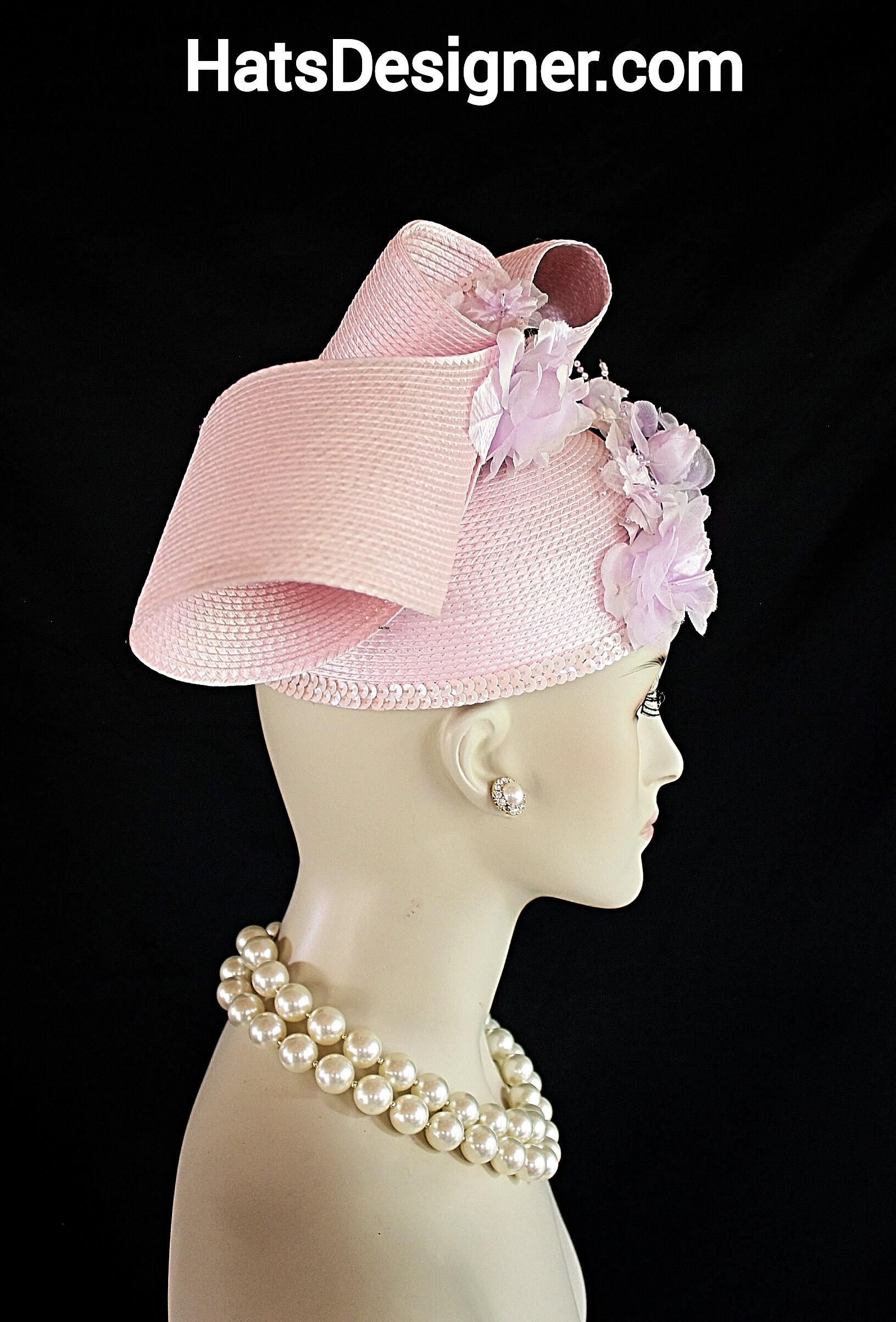 NYFashionHats Headwear Apparel,CoutureDesignerHats Millinery For Women,Custom Headdress Apparel For Women,Each Hat Is Custom Made Per Order,Shaped Sculptured Designer Pillbox Hat,Handmade Silk Flower Beads Sequin,Decorative Sequin Trim,Pink Pillbox Wedding Fashion Hat Women,Sculpture Shaped Art Pillbox Designer Hat,Soft Lavender Purple Vintage Silk Flowers,Soft Pink Sequin Trim,Pearl Loop Embellishments