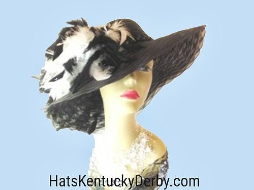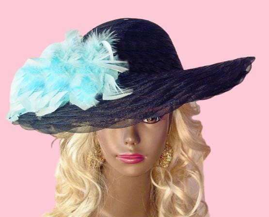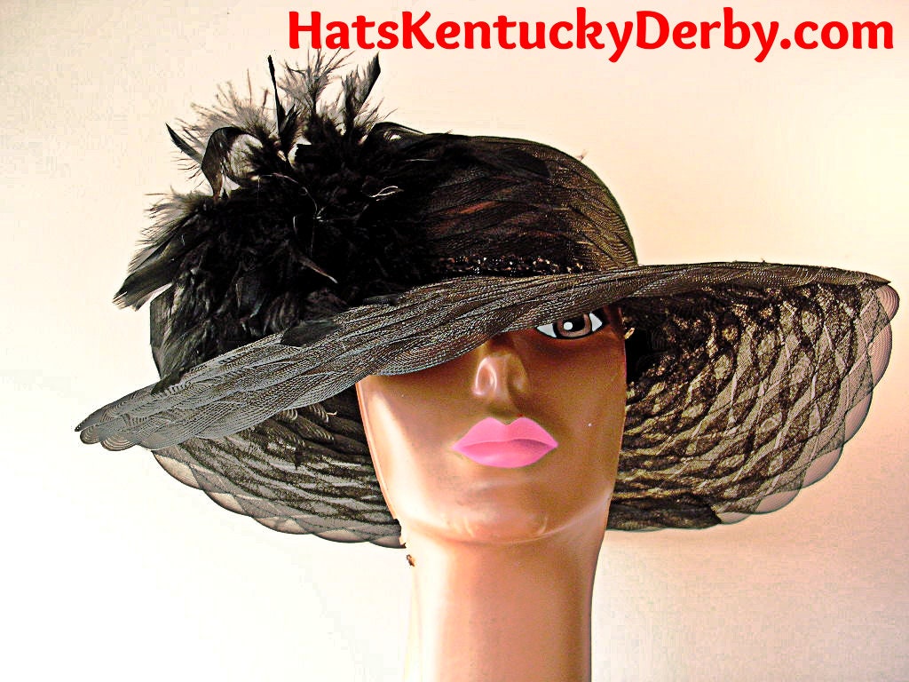 Black Wide Scalloped Edged Brimmed Kentucky Derby Designer Hat For Women. This Hand Made Black Fashion Hat Is Trimmed With Your Choice Of Custom Feather Colors. This Designer Custom Made Hat Is A Show Stopper. Suited For Winter, Spring, Summer And Fall. This Couture Hat Can Be Customized To Match Your Wardrobe. If You Need A Custom Hat Or Feather Colors Please Notify Me. This Elegant Hat Is Custom Made And Designed By NY Fashion Hats Couture Millinery Headwear Apparel.