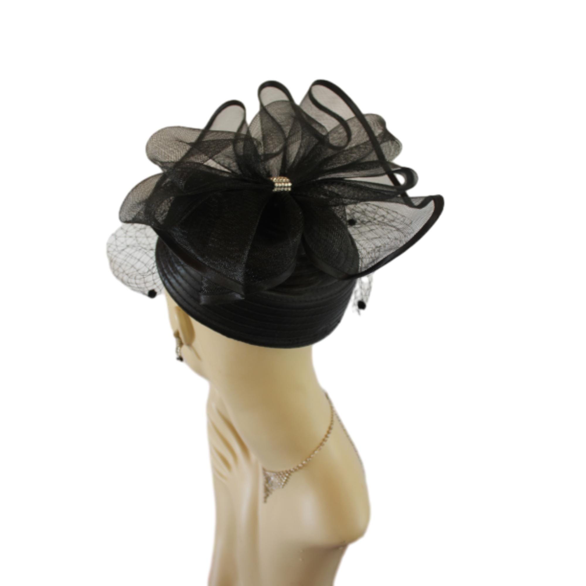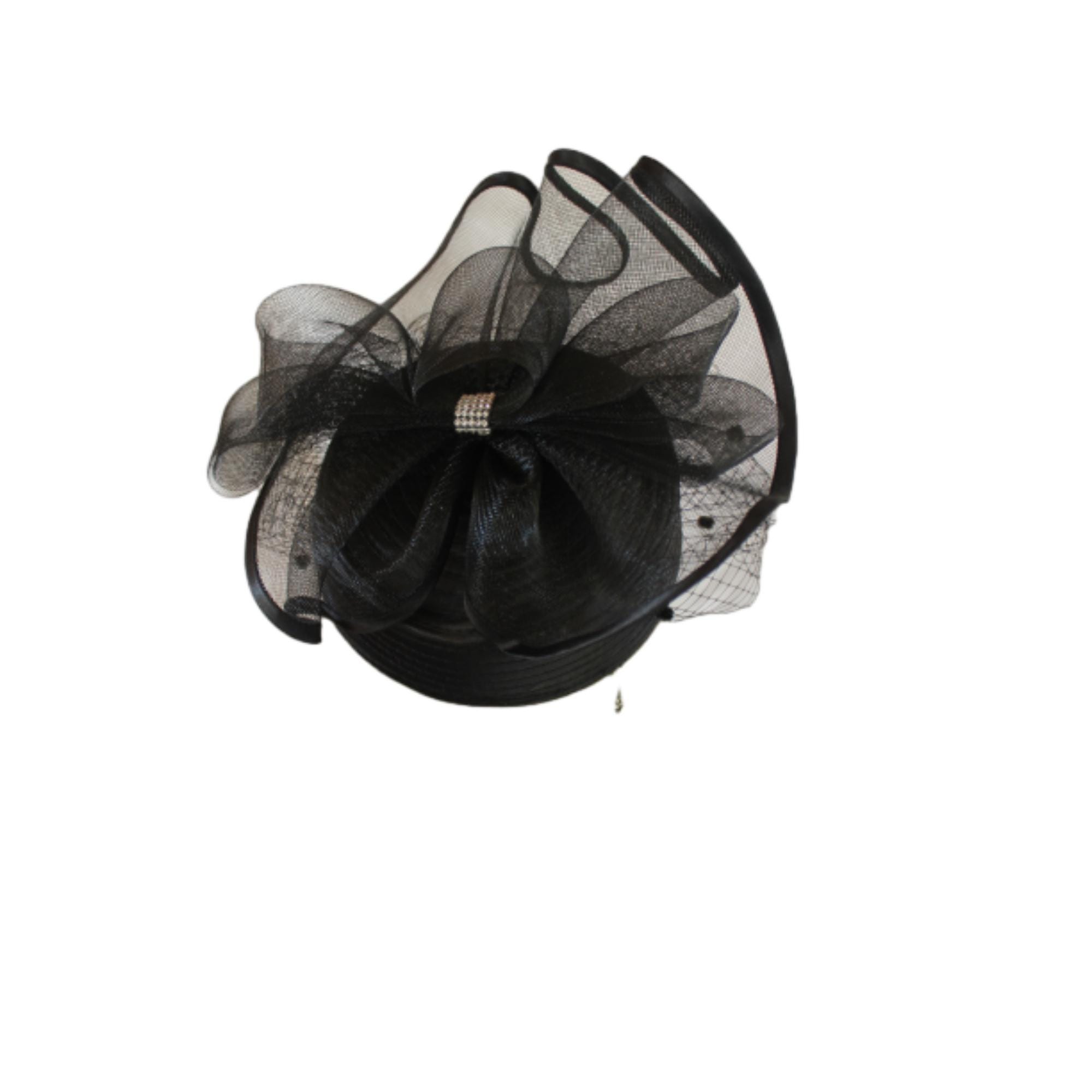 NYFashionHats Couture Hats For Women,Womens Custom Hats,Mother Of The Bride Pillbox Wedding Hat,CoutureDesignerHats Headwear Apparel,Black Satin Pillbox Cocktail Hat With Veil,Dotted Black Birdcage Netting Face Veil,Hair Comb To Hold Hat In Place,Black Satin Braid Formal Hat,Style Shallow Crown,23 Inch Inner Crown Size,Rhinestone Adornment Inside Bow,Satin Edged Large Crinoline Bow On Top Of Hat