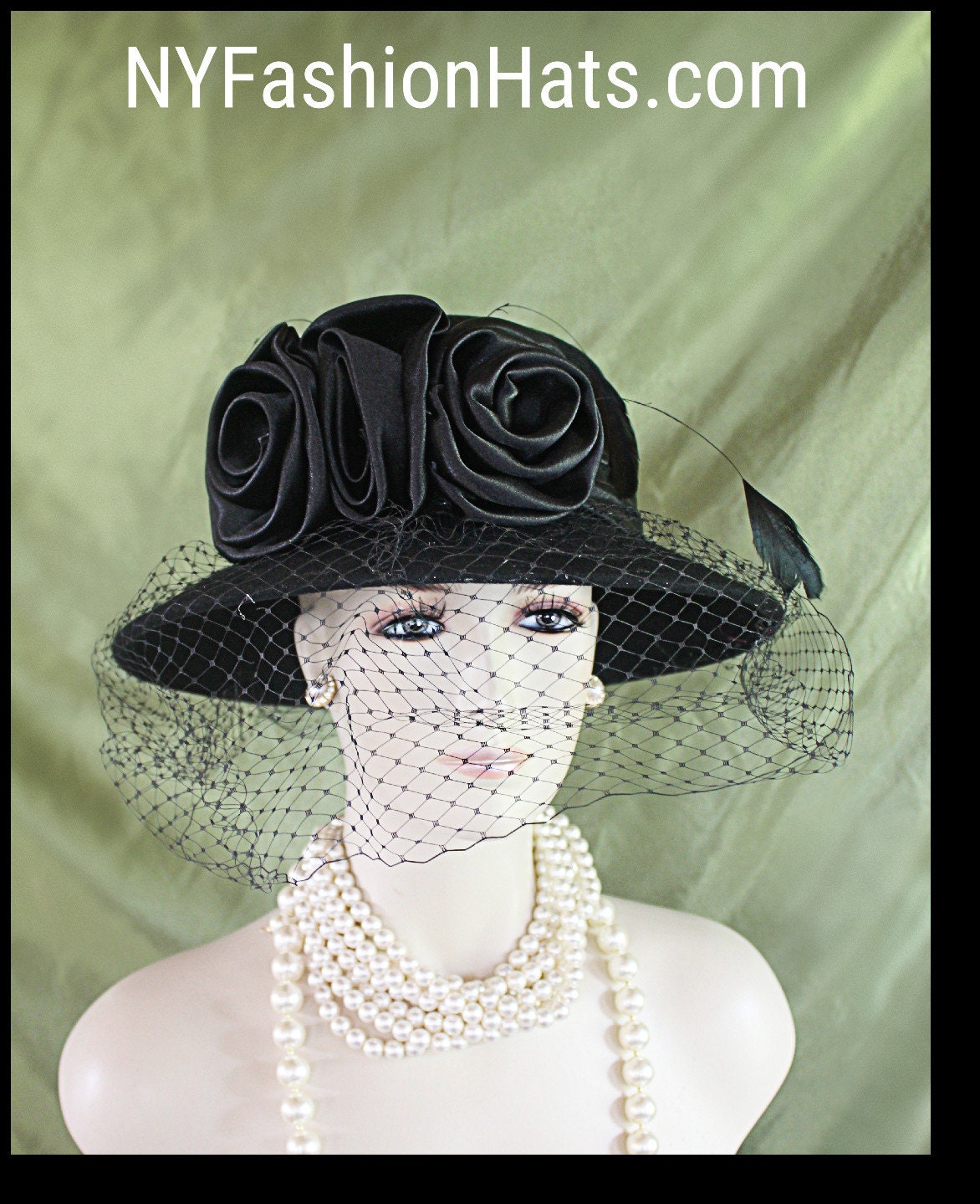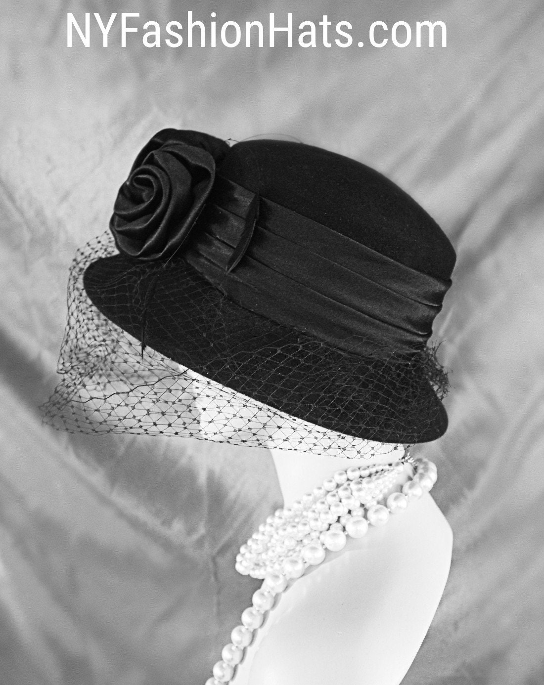This Statement Black Veiled Hat Is Custom Made And Designed By NY Fashion Hats Couture Millinery Headwear Apparel. This Hat Is Suited For Weddings, Brides, Mother Of The Bride, Church, Temple, Formal Affairs, Horse Races, Funerals, Black Tie Cocktail Parties And Special Occasion Events And Gatherings.