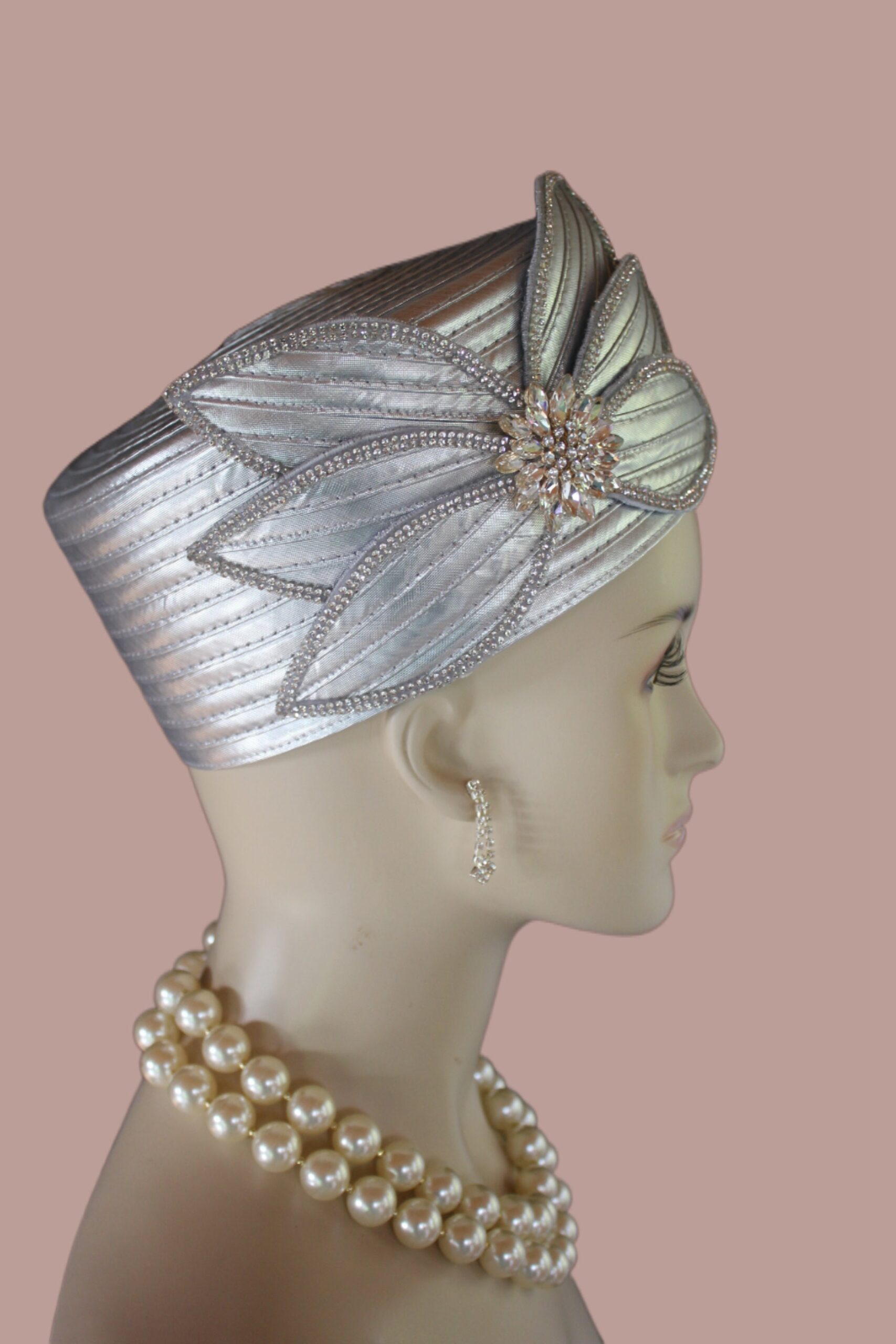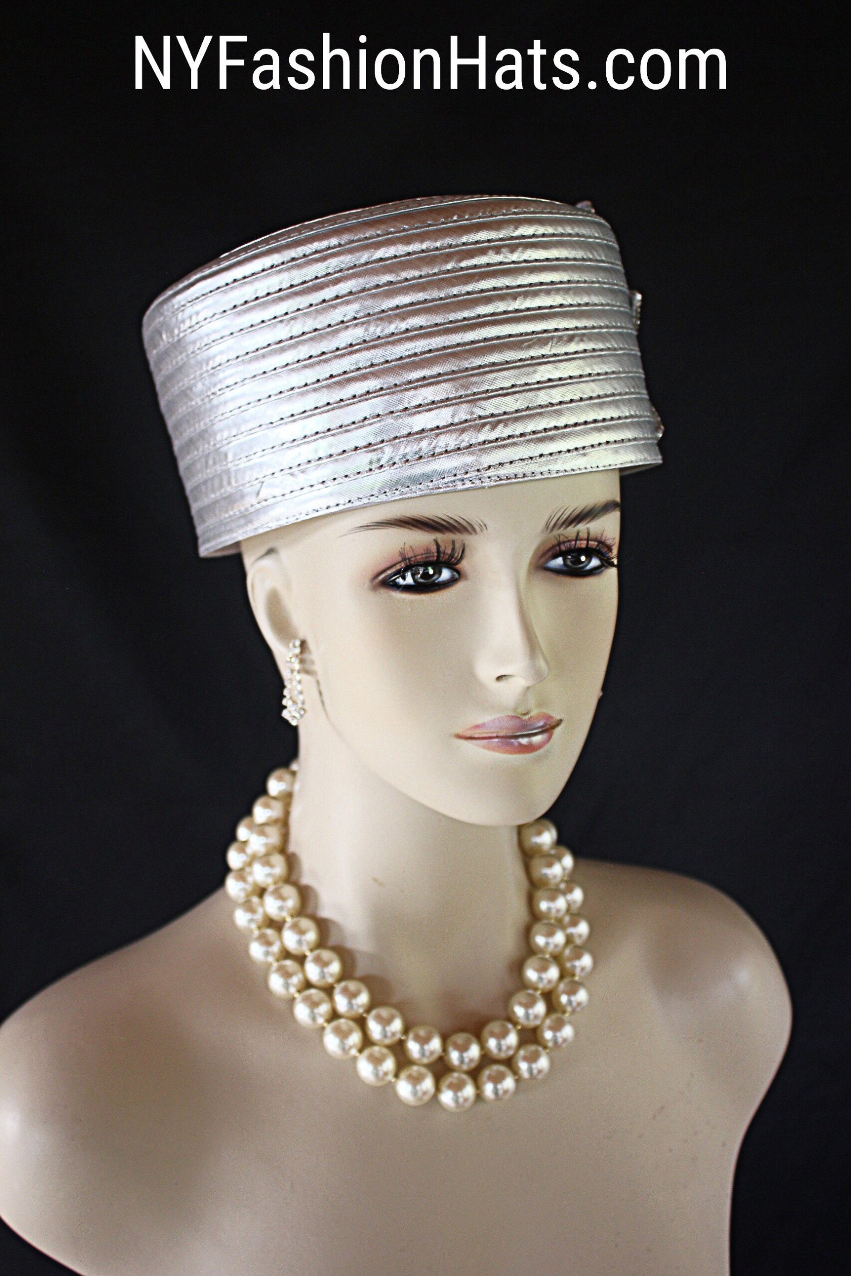 Classic Metallic Silver Satin Pillbox Formal Church Temple Hat, Couture Designer Hats For Brides Weddings, Dress Hats Women, NY Fashion Hats