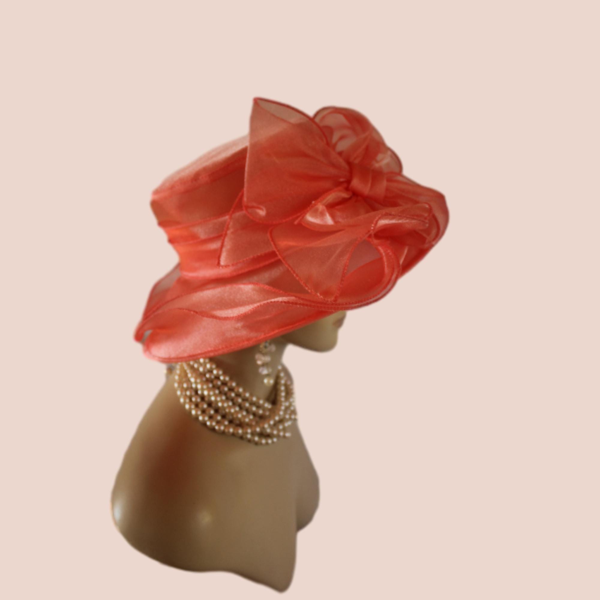 This Women’s Coral Orange Hat Is Suited For Parties, Weddings, Holidays, Thoroughbred Horse Racing, The Kentucky Derby, The Royal Ascot, Formal Events, Church, Temple And Special Occasions.