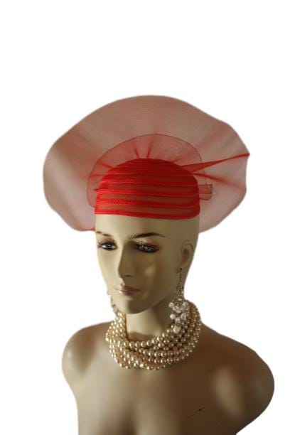 Measurements: 22.5″ Shallow Crown Size – Fits Most Women. New Condition – Custom Made Couture Fashion Hat – This Hat Can Be Worn In Different Positions. Can Be Worn More Toward The Back Of The Head Or As A Cloche Fashion Hat. This Designer Custom Made Hat Is A Show Stopper.