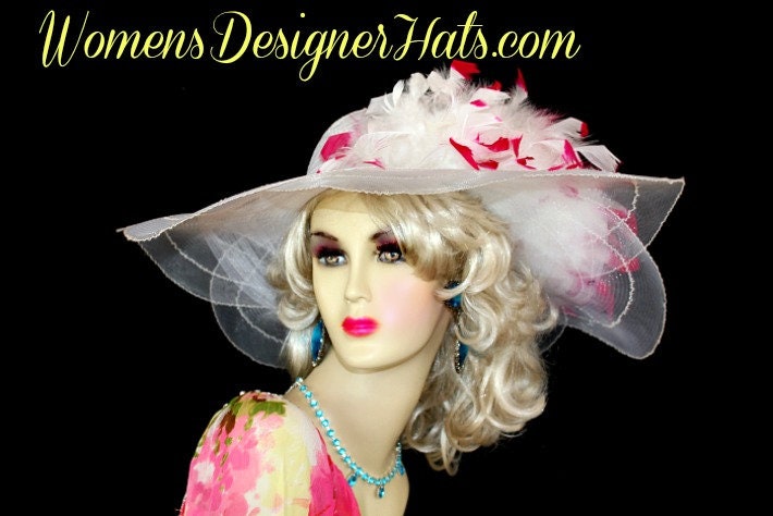 Women’s White Wide Sheer Horsehair Scallop Edged Brimmed Kentucky Derby Designer Hat For Women. This Hand Made White Fashion Hat Is Trimmed With Your Choice Of Custom Feather Colors. This Designer Custom Made Hat Is A Show Stopper. Suited For Winter, Spring, Summer And Fall. This Couture Hat Can Be Customized To Match Your Wardrobe. If You Need A Custom Hat Or Feather Colors Please Notify Me.