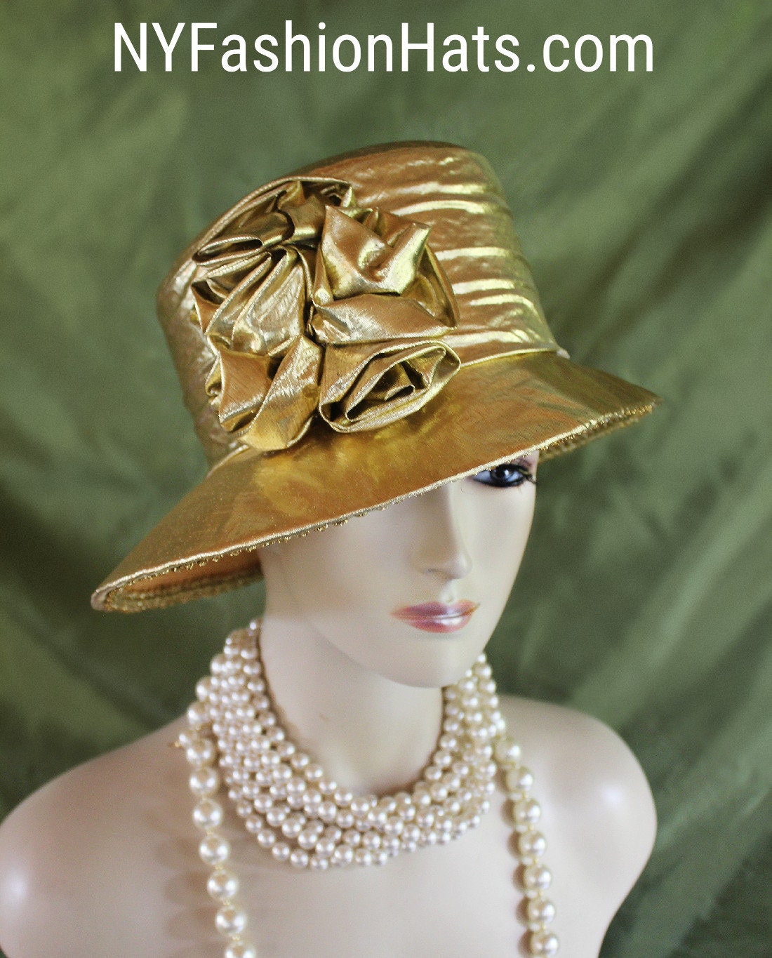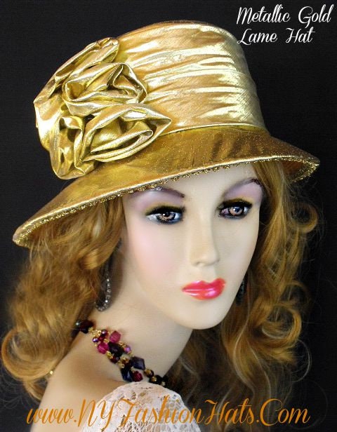 This Statement Metallic Gold Hat Is Custom Made And Designed By NY Fashion Hats Couture Millinery Headwear Apparel. This Hat Is Suited For Weddings, Brides, Mother Of The Bride, Church, Temple, Funerals, Sabbath, Formal Affairs, Horse Races And Special Occasion Events And Gatherings.