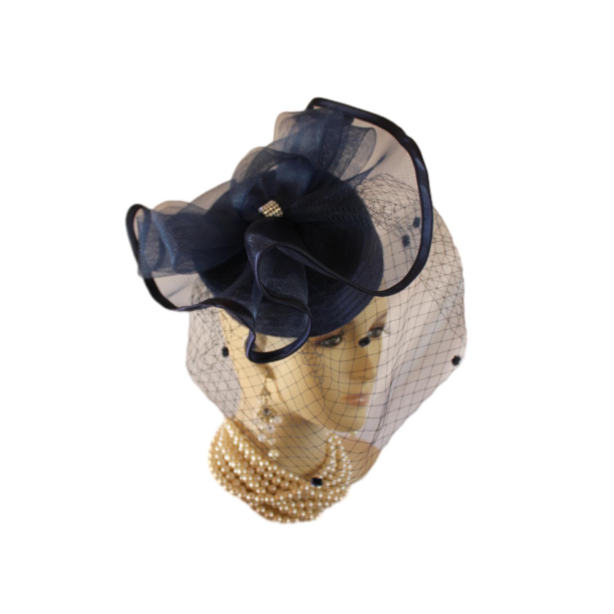 NYFashionHats Couture Hats For Women,Womens Custom Hats,Mother Of The Bride Pillbox Wedding Hat,CoutureDesignerHats Headwear Apparel,Hair Comb To Hold Hat In Place,Style Shallow Crown,23 Inch Inner Crown Size,Rhinestone Adornment Inside Bow,Satin Edged Large Crinoline Bow On Top Of Hat,Dotted Birdcage Netting Face Veil,Navy Blue Satin Edged Horsehair Bow,Navy Blue Satin Formal Pillbox Hat With Veil,Navy Blue Satin Braid Shallow Crown Hat