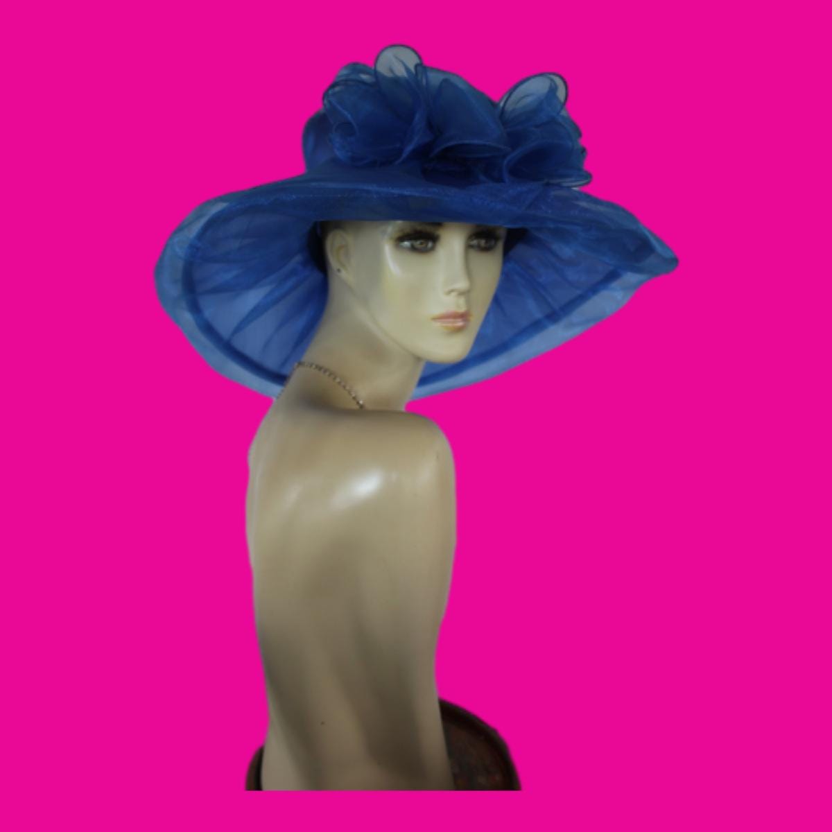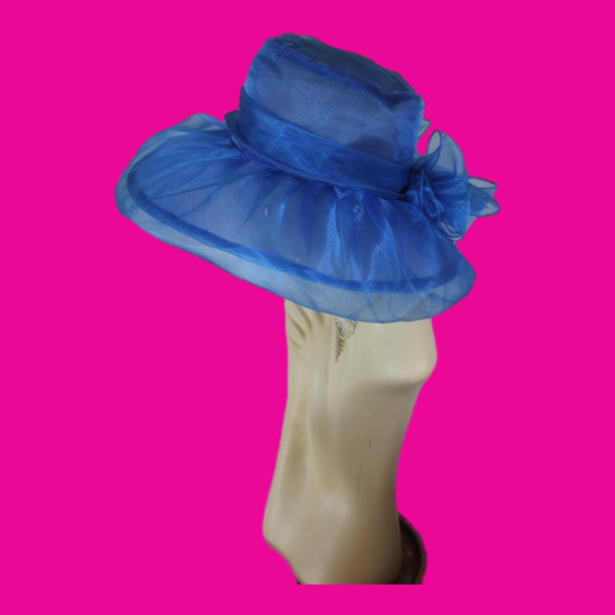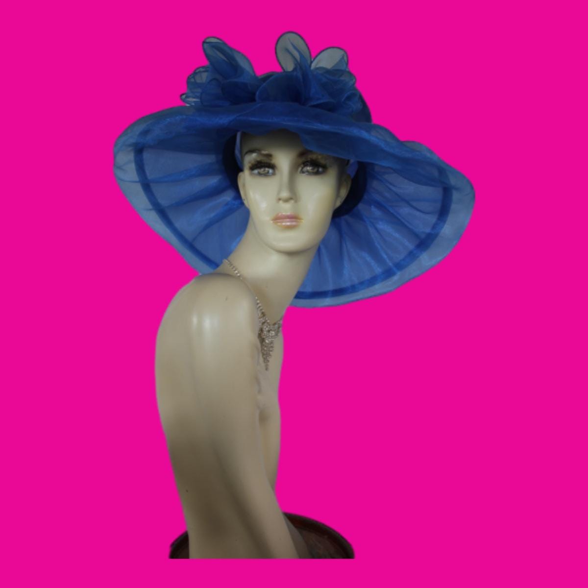 Elevate your style this season with our exquisite Women’s Royal Blue Large Sheer Brim Organza Big Bow Formal Wedding Kentucky Derby Hat. Custom crafted from luxurious royal blue organza, this stunning headpiece is not just a hat; it’s a statement of elegance perfect for any special occasion. Whether you’re attending horse races, weddings, or formal church events, its large brim and intricate design will ensure you stand out in the most sophisticated way. Designed to fit most women with a head size of 22.5″, this hat is versatile enough to be worn year-round—Winter, Spring, Summer, and Fall. When you choose to adorn your outfit with our custom-made hats, you’re embracing haute couture and the finest in high fashion. Don’t miss your chance to own a piece that embodies style and sophistication.