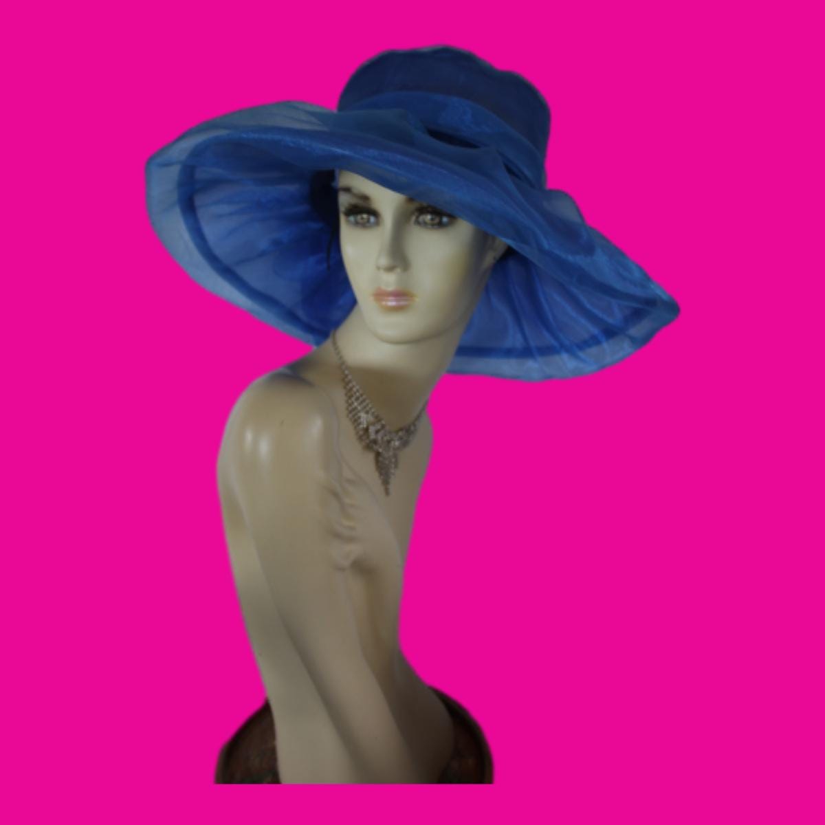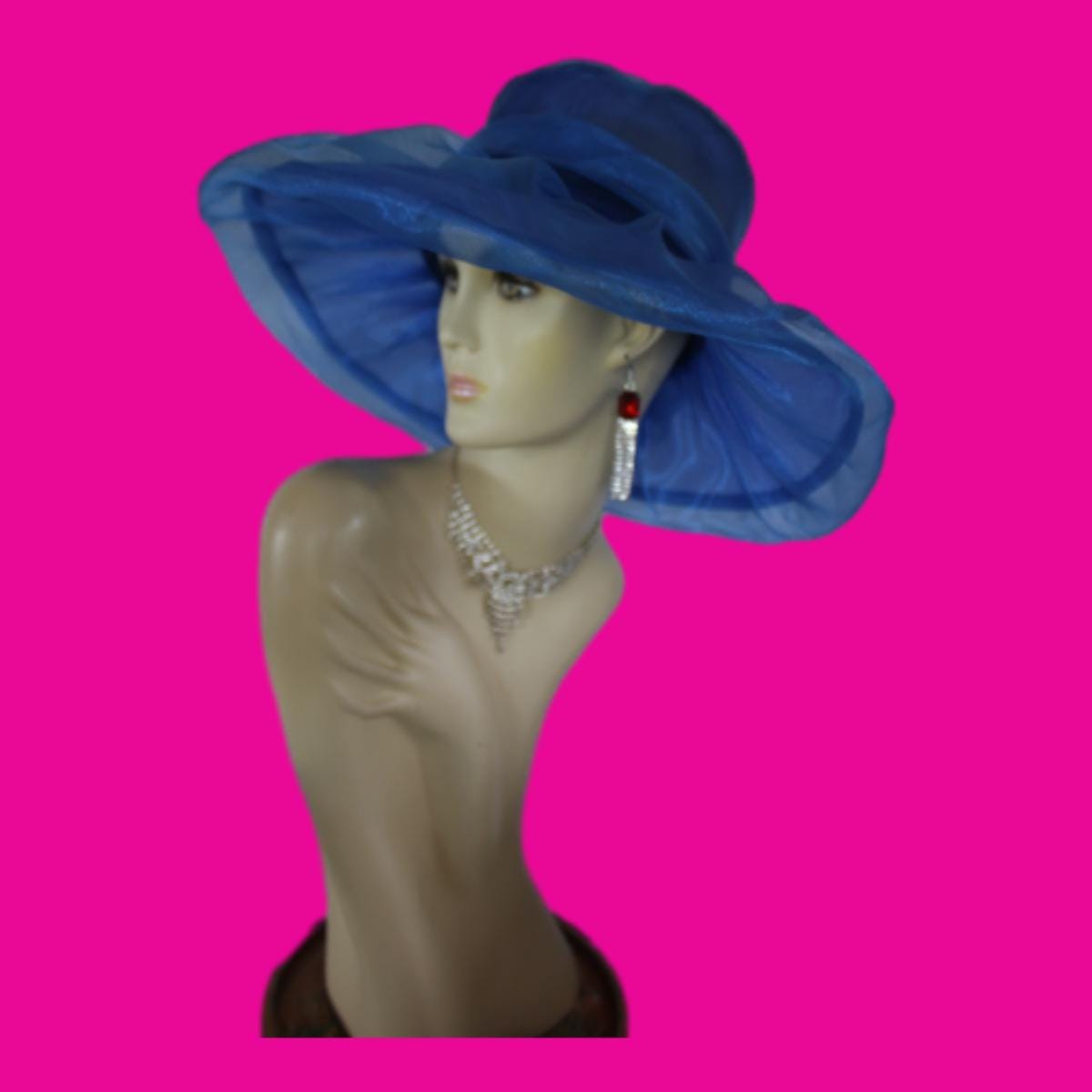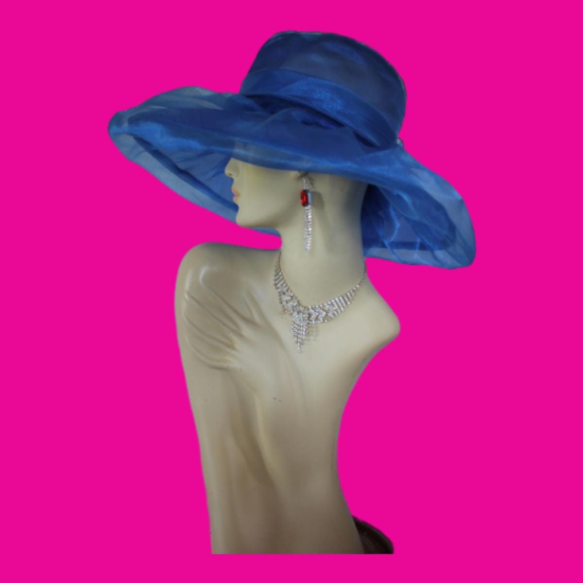 Elevate your style this season with our exquisite Women’s Royal Blue Large Sheer Brim Organza Big Bow Formal Wedding Kentucky Derby Hat. Custom crafted from luxurious royal blue organza, this stunning headpiece is not just a hat; it’s a statement of elegance perfect for any special occasion. Whether you’re attending horse races, weddings, or formal church events, its large brim and intricate design will ensure you stand out in the most sophisticated way. Designed to fit most women with a head size of 22.5″, this hat is versatile enough to be worn year-round—Winter, Spring, Summer, and Fall. When you choose to adorn your outfit with our custom-made hats, you’re embracing haute couture and the finest in high fashion. Don’t miss your chance to own a piece that embodies style and sophistication.