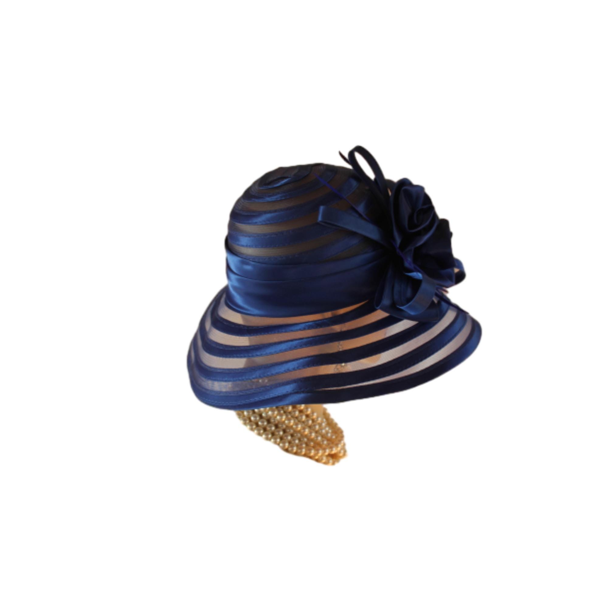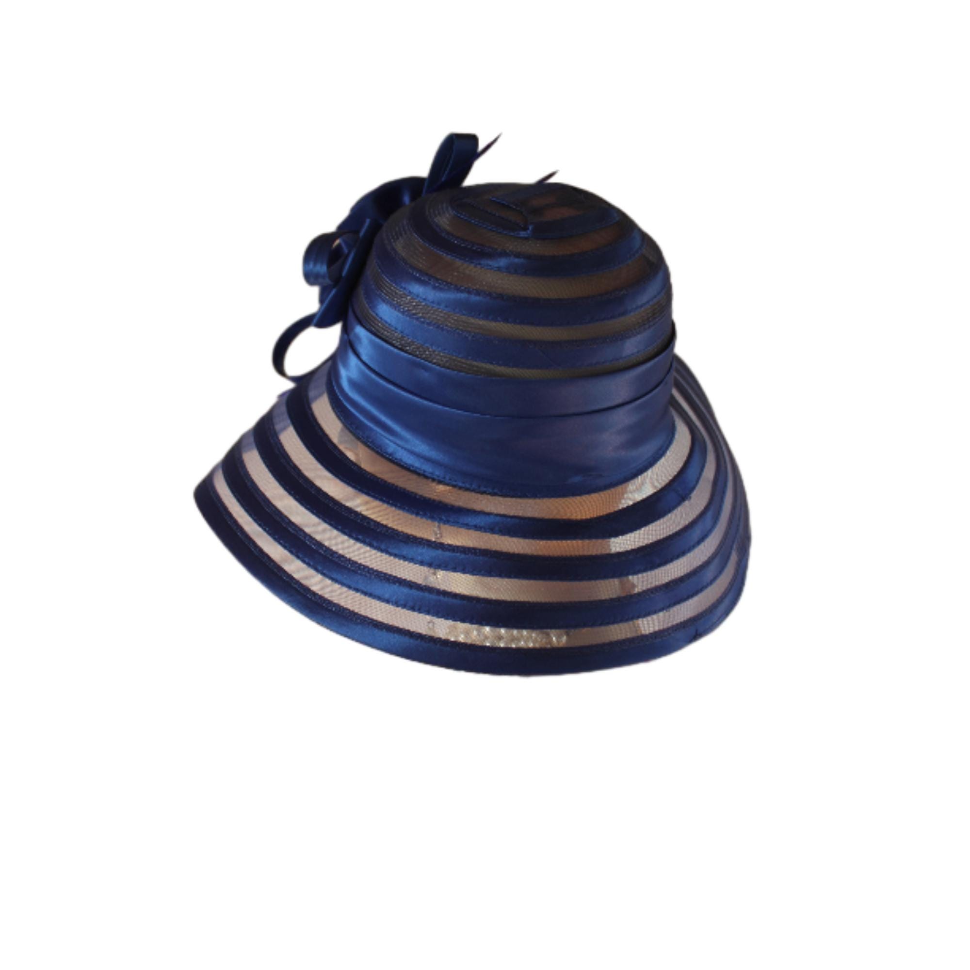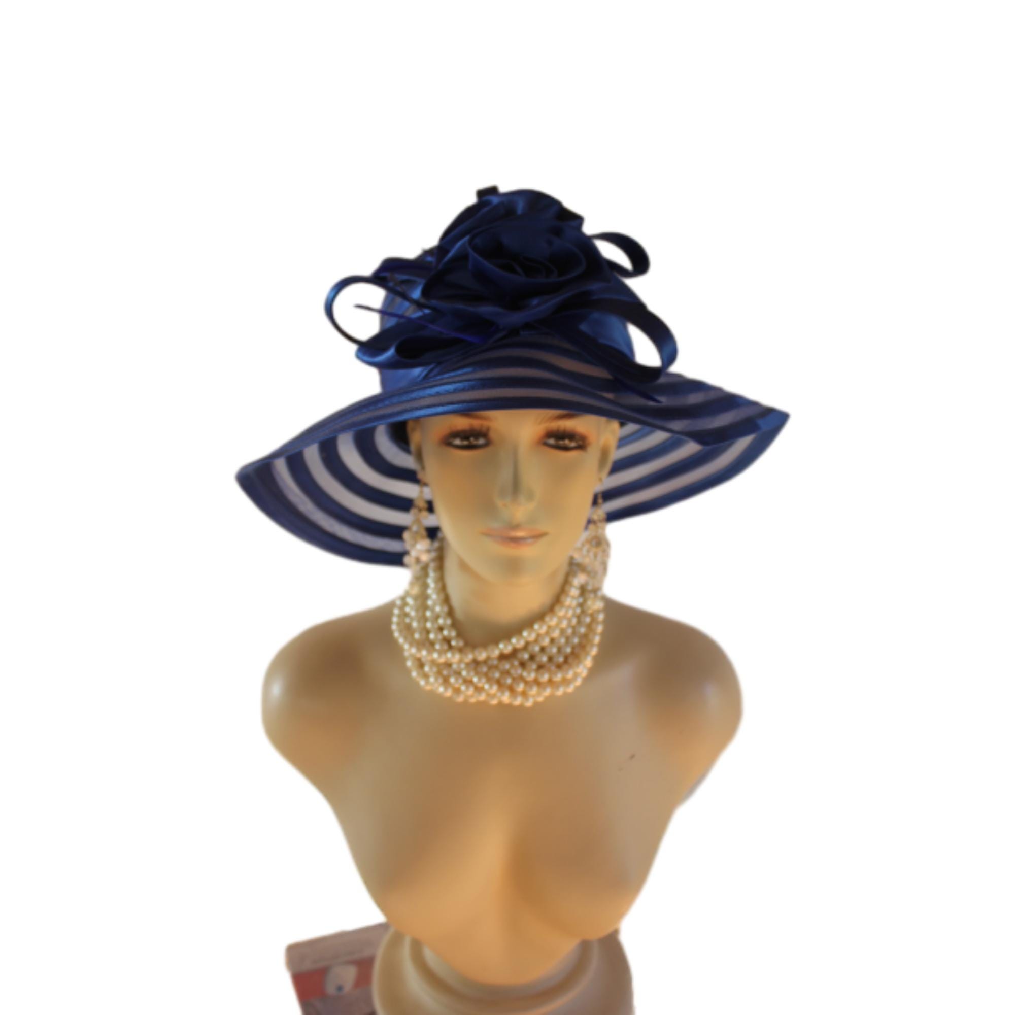 Women’s Formal Haute Couture Royal Navy Blue Colored Satin Floppy Satin Crinoline Wide Brim Dress Hat. This Hat Is Well Suite For Mother Of The Bride Or Groom.