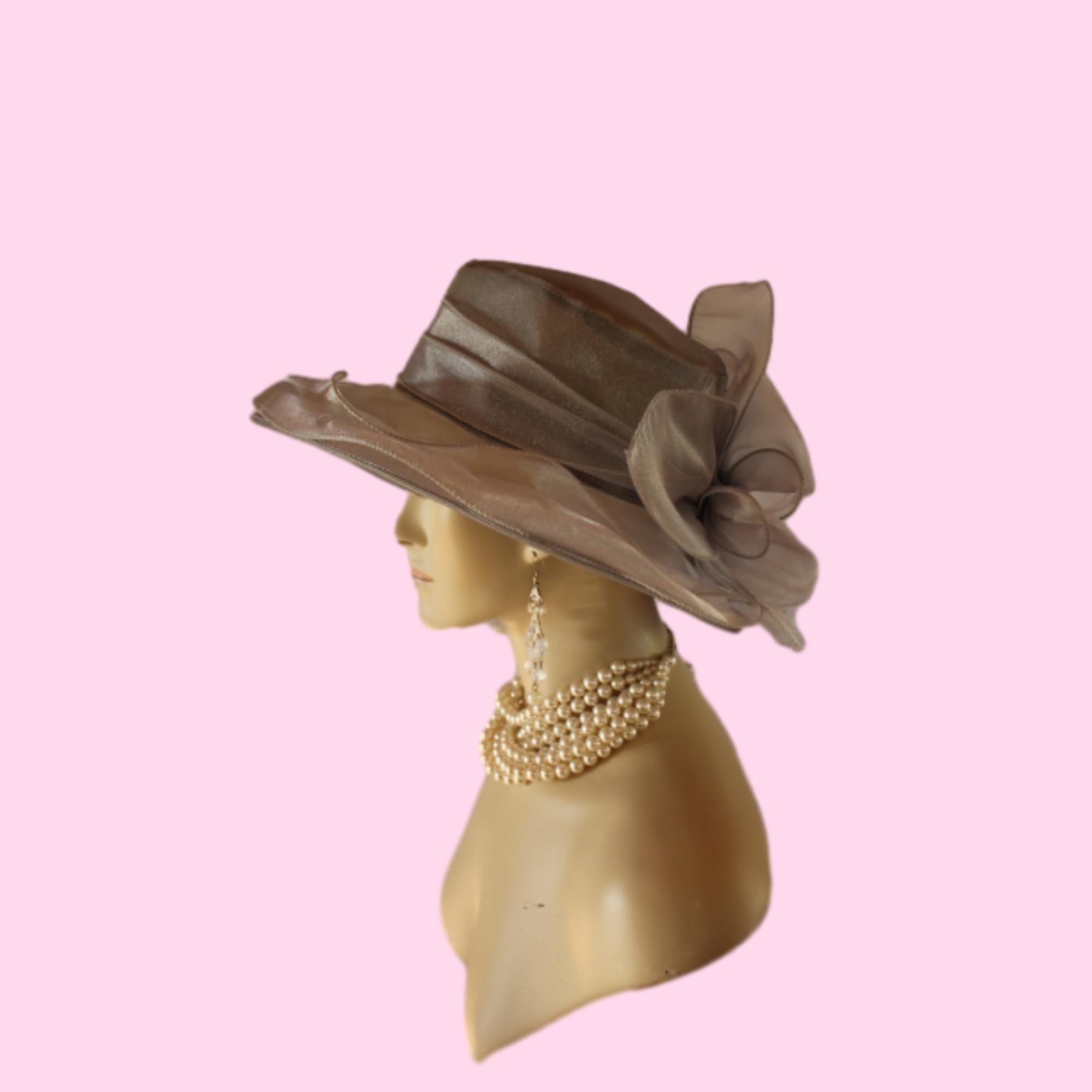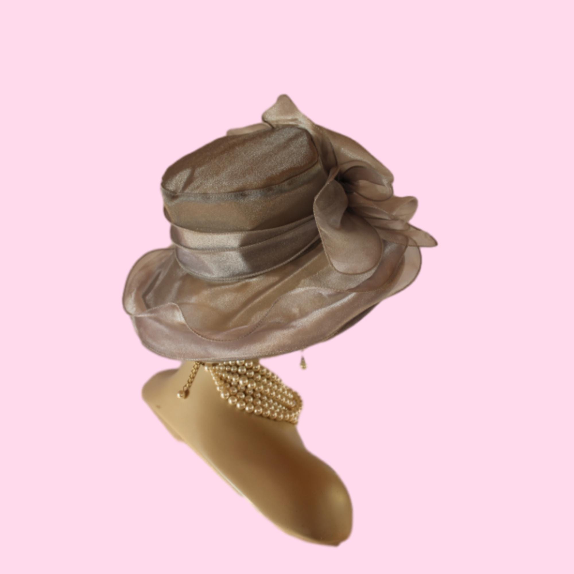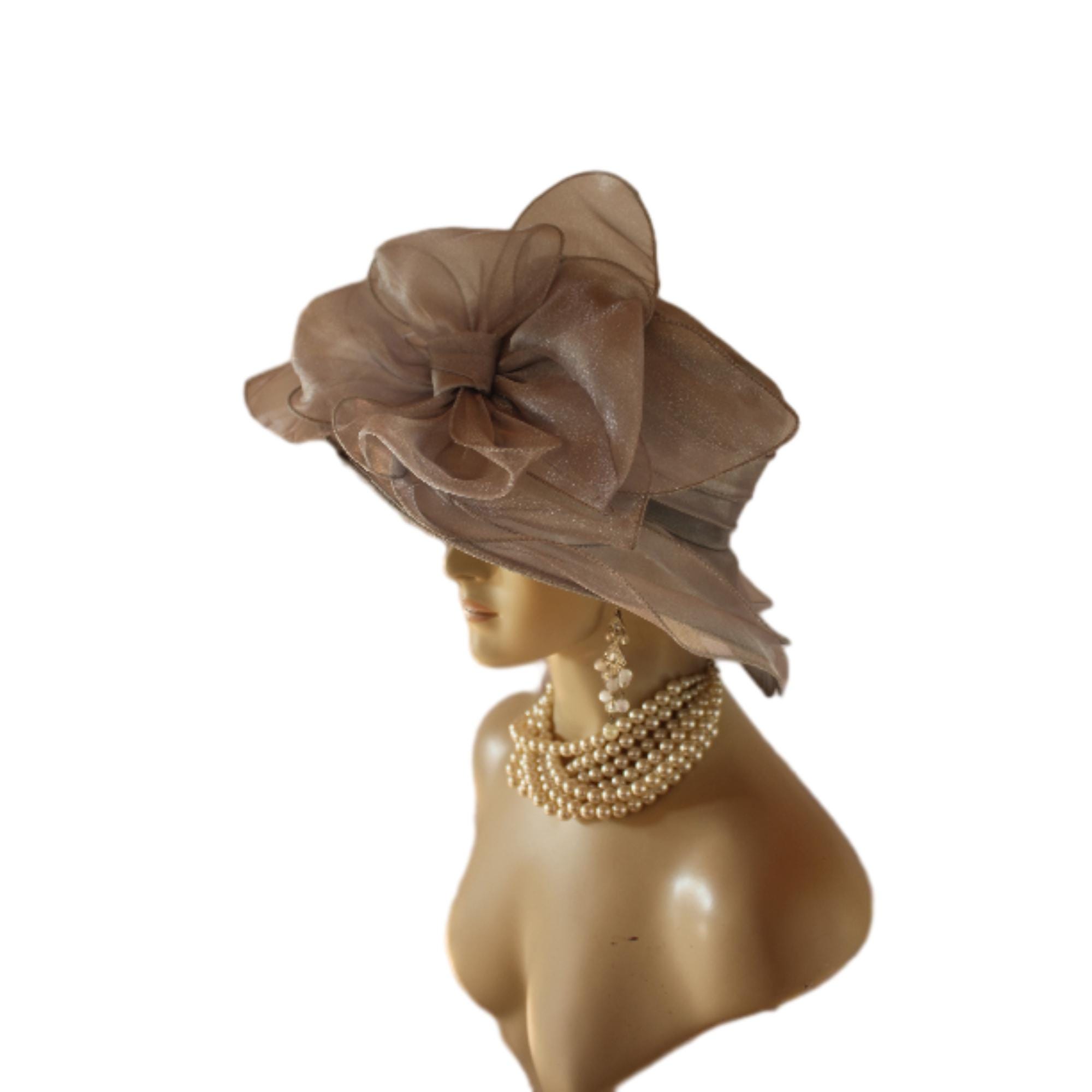 Measurements: 22.5" Crown. Material: Organza Hat – Wide Brim Ruffled Edge Hat. This Versatile Spring Summer Or Fall Hat Can Be Worn In Different Positions On The Head. The Bow Can Be Worn Toward The Face Or Placed At The Back Of The Head.
