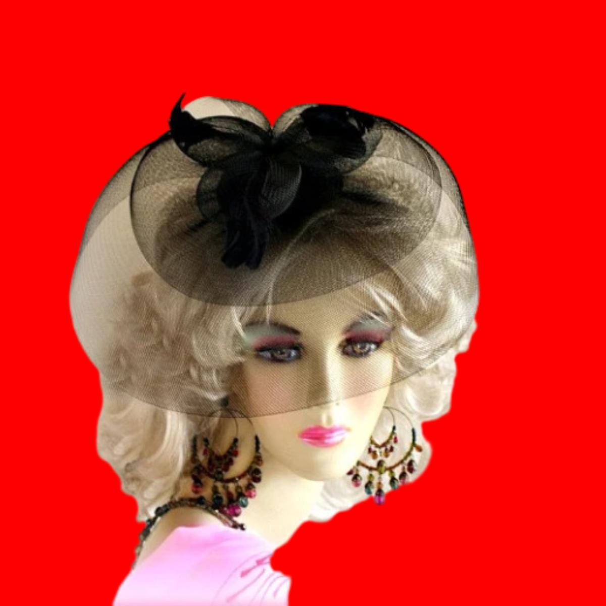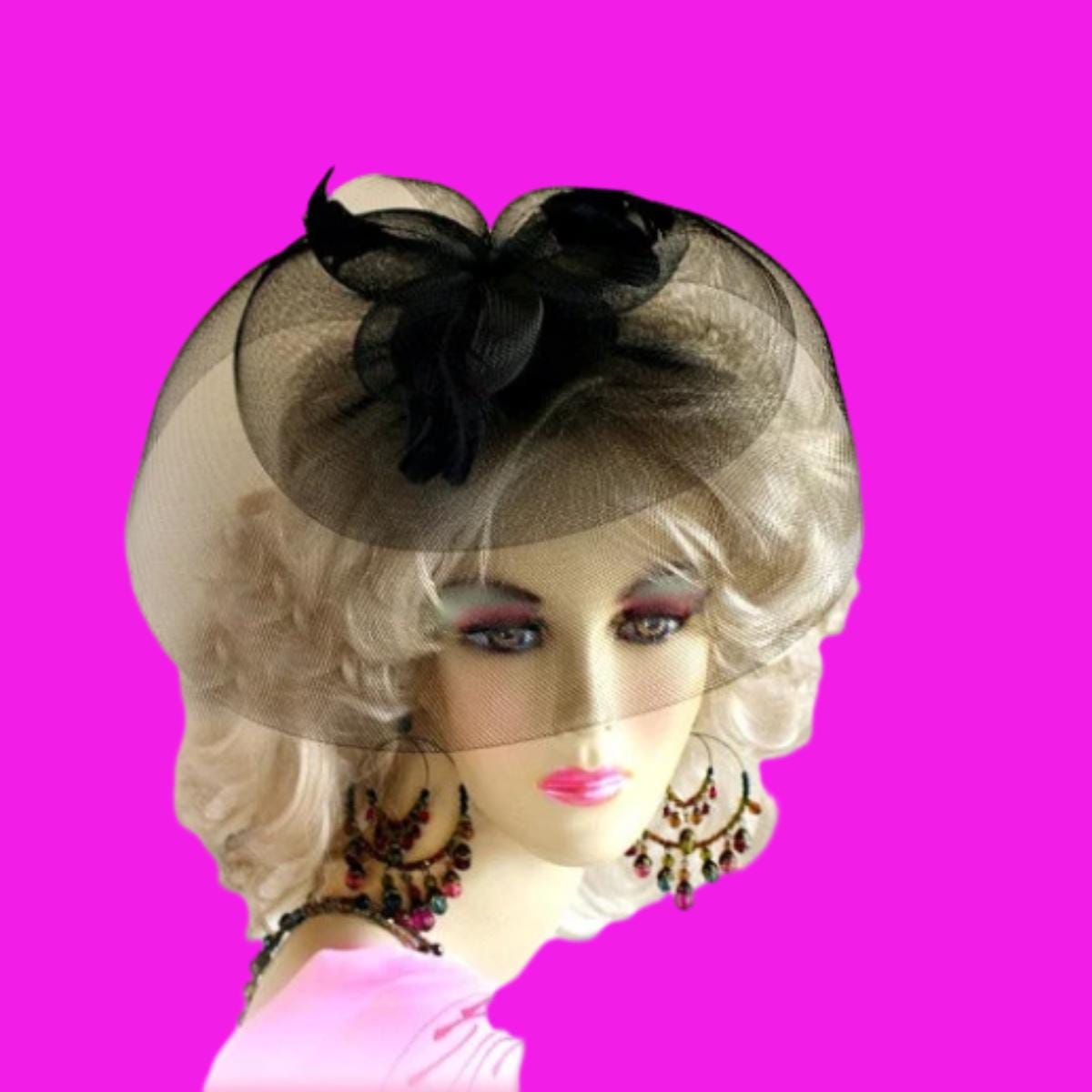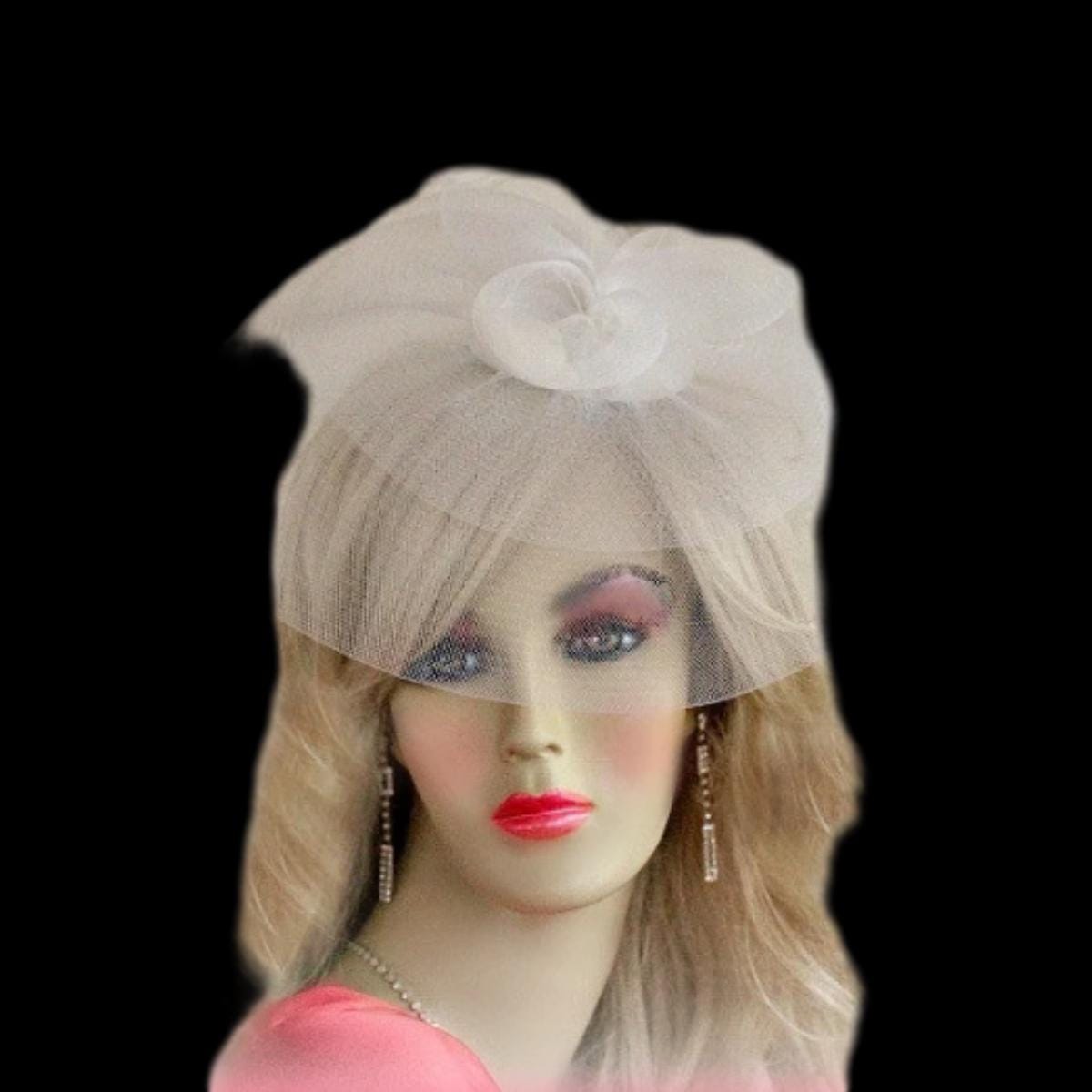 This sheer designer fashion headpiece hat can be worn in any desired position on the head the wearer chooses.