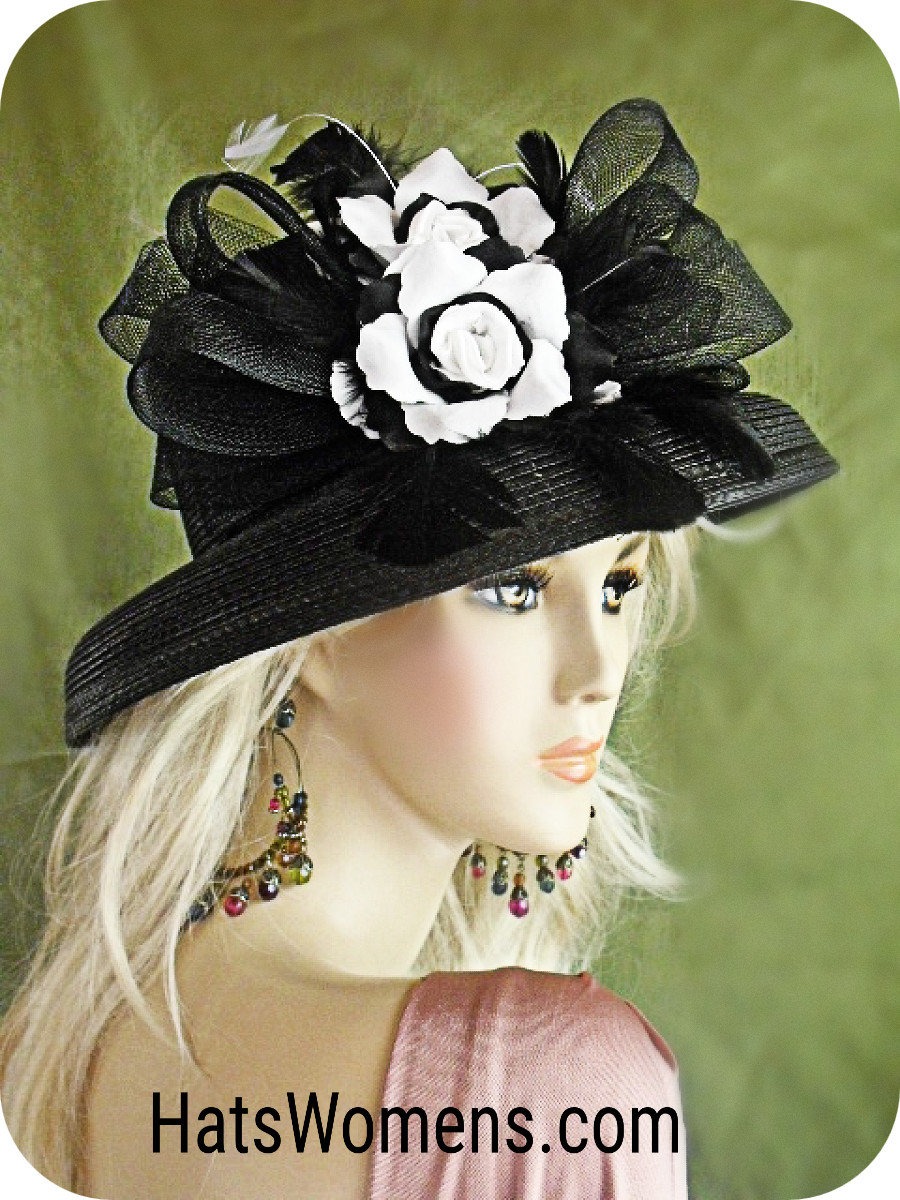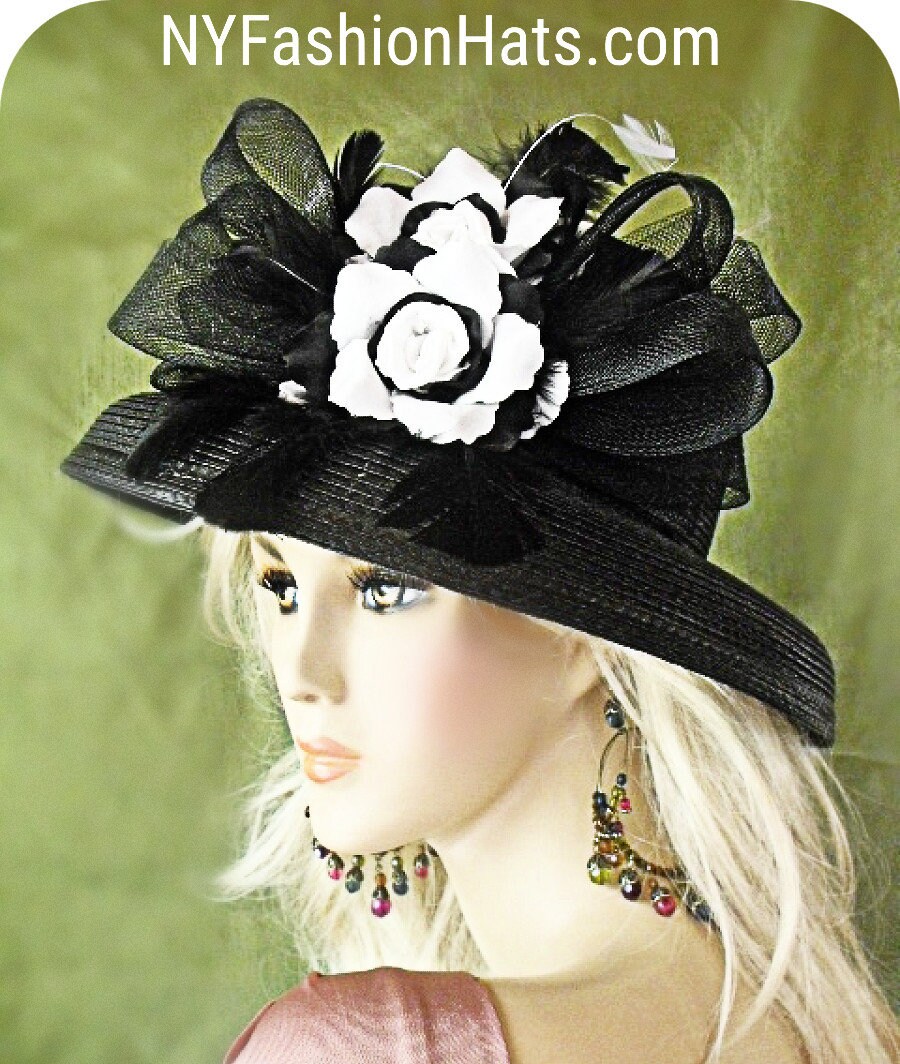 Women's Black And White Formal Couture Designer Hat, Hats For Wedding Church Sabbath Dress, Hats For Horse Races, Kentucky Derby Hats, NYFashionHats Millinery Apparel