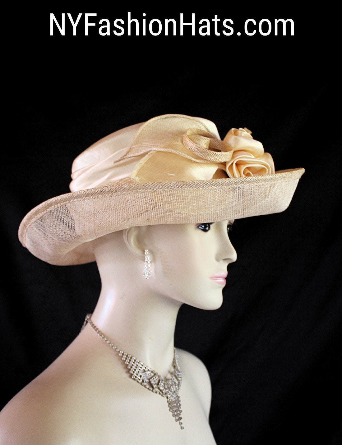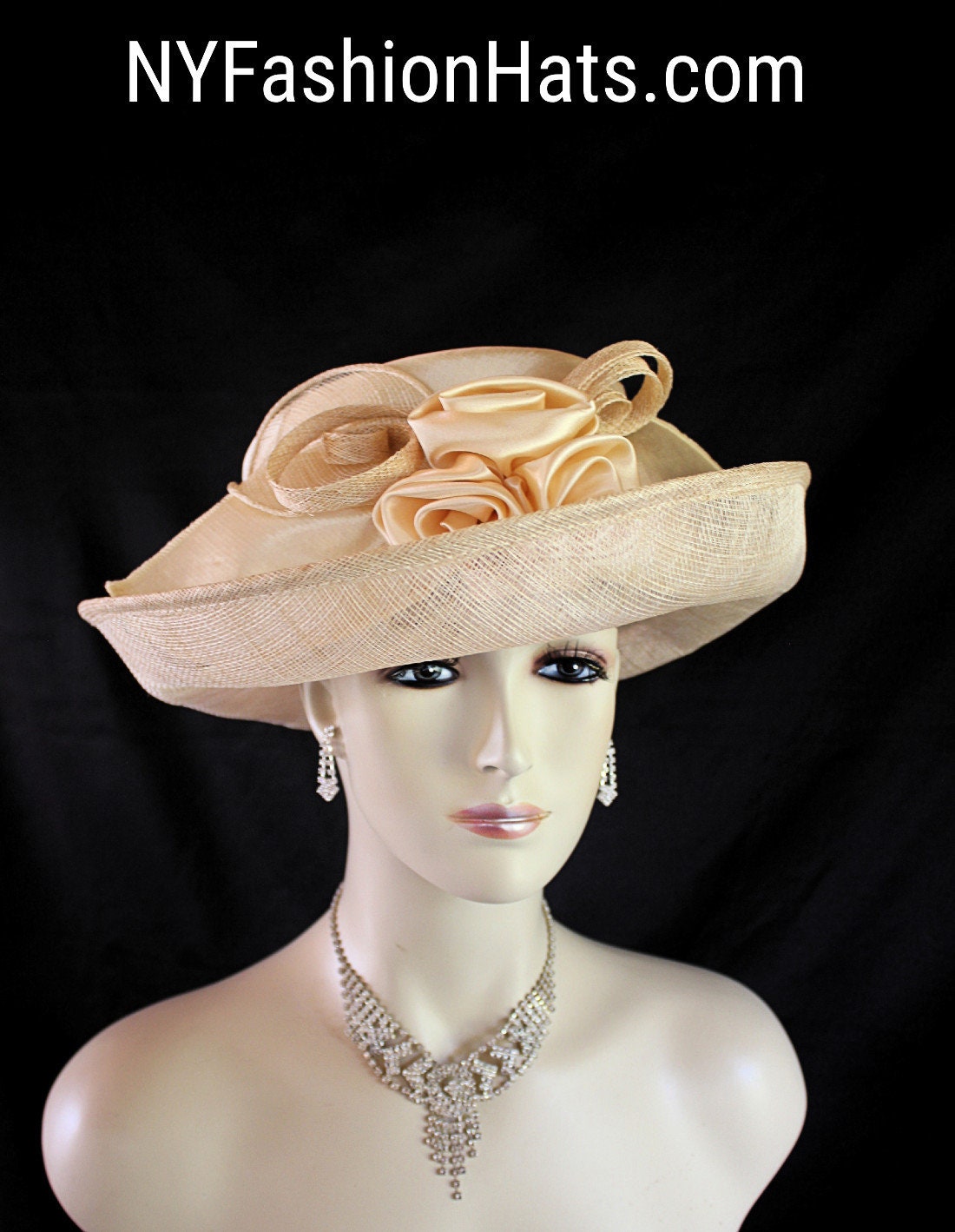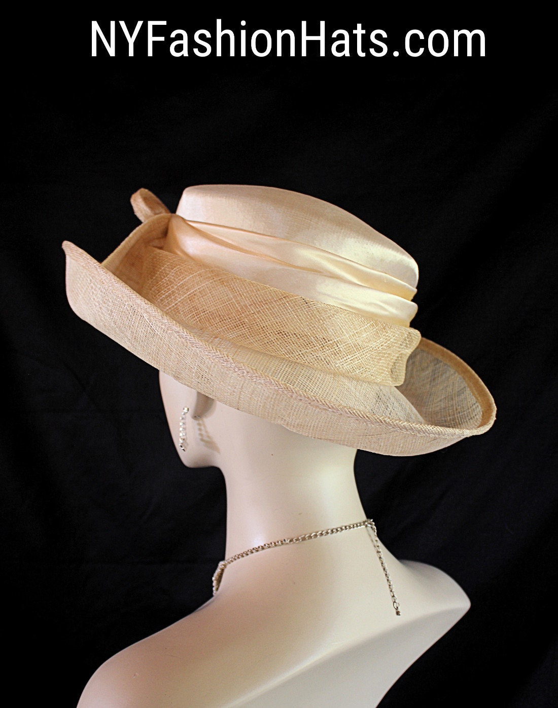 This Formal Champagne Beige Sinamay Straw Satin Hat Is Suited For Weddings, Formals, Church, Shabbat, Mother Of The Bride Or Groom, Formal Special Occasion Events And Holidays.