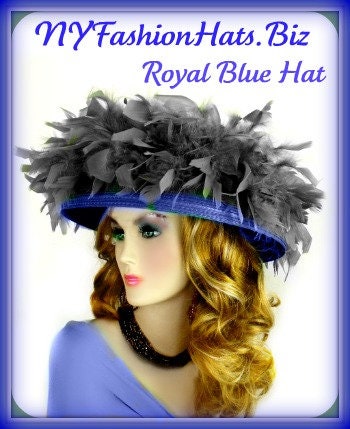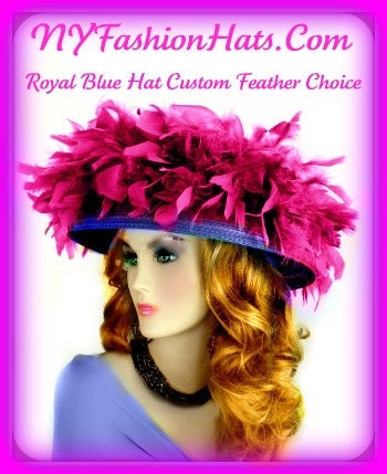 Step into the spotlight with this exquisite Ladies Royal Blue Haute Couture Wide Brim Hat, perfect for the Kentucky Derby, weddings, and sophisticated church gatherings. Adorned with luxurious royal blue chandelle feathers that gracefully encircle the crown, this lampshade-style dress hat exudes an enchanting femininity. It’s an ideal accessory for the modern bride or any guest seeking to make a statement. This beautiful hat can be customized with your choice of feather colors.
