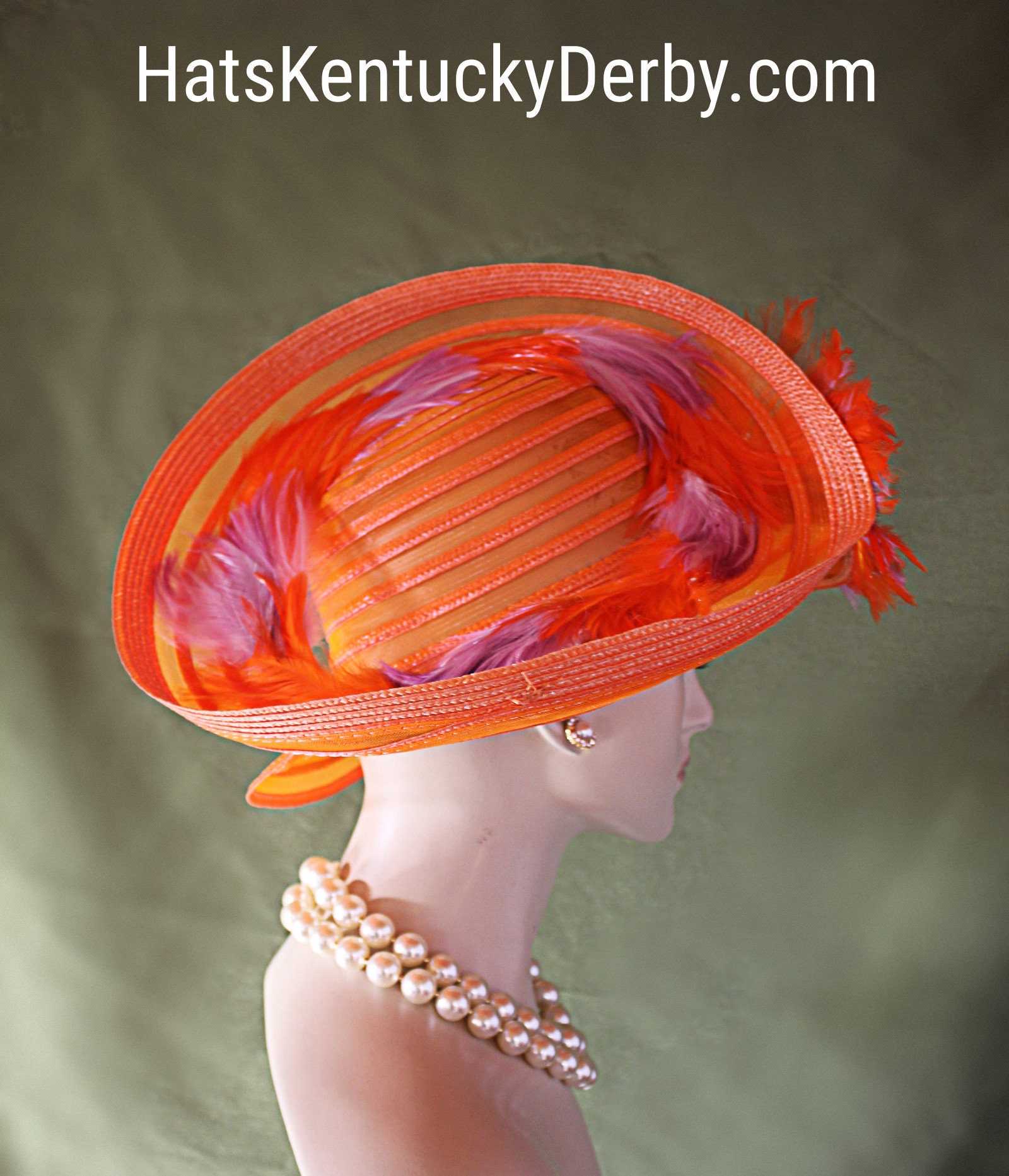 NYFashionHats Haute Couture Hat Millinery,Mother Of The Bride Hat Headpiece,Haute Couture Sculpture Orange Sheer Hat,Orange And Purple Hackle Rooster Feathers,Circular Sheer Sculpture Hat Piece,Luxury Designer Fashion Hat,Bold Orange Colored Hat Sheer Base,Hats For Horse Races Derbies And Parties,Lampshade Down Brim Style,Poly Straw Orange Sheer Braid,Lightweight See Thru Hat